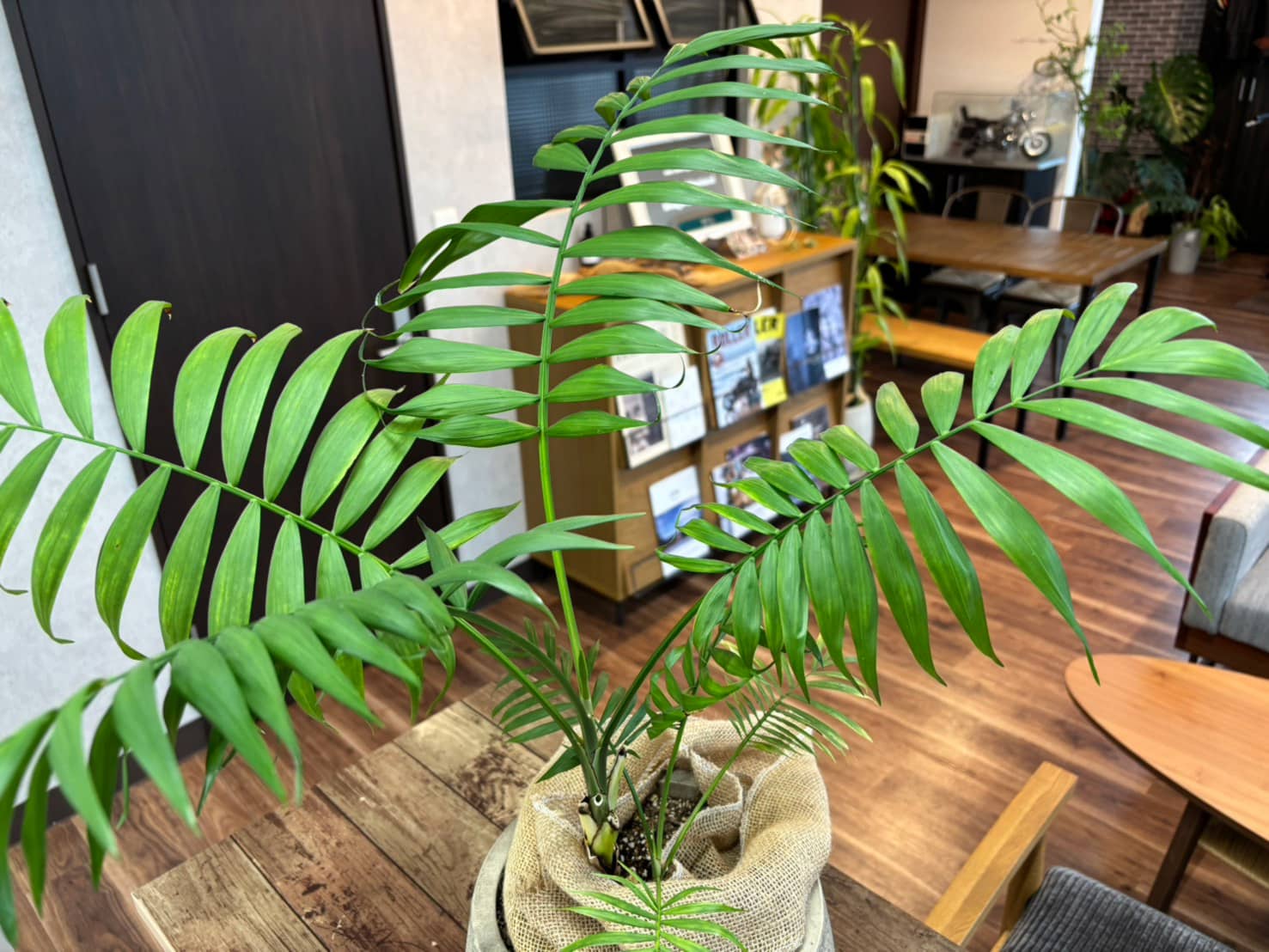 植え替え前は少しクタッとして緑の色が薄かったテーブルヤシも、 根詰まりが解消され栄養をしっかりと吸収できるようになったおかげでしょうか、 緑の色も濃くなり鮮やかさを増して大きく成長しています!