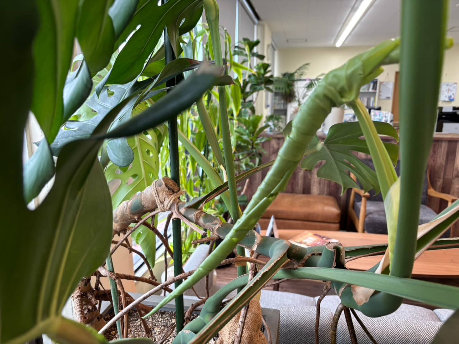 観葉植物たちが元気になったことで、オフィス全体の雰囲気がますます明るくなったように感じます! 鉢のサイズの割に大きくなり過ぎていたモンステラも、株分けをしてもらいますます元気になりました。